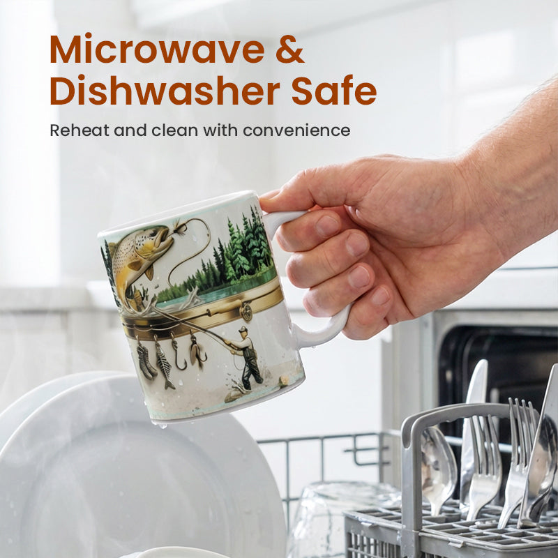 HÅLLBAR KERAMIKKONSTRUKTION: Denna mugg är tillverkad av högkvalitativ keramik och är byggd för att hålla. Den håller värmen väl och håller ditt kaffe eller te varmt medan du minns dina största fångster och planerar din nästa resa.