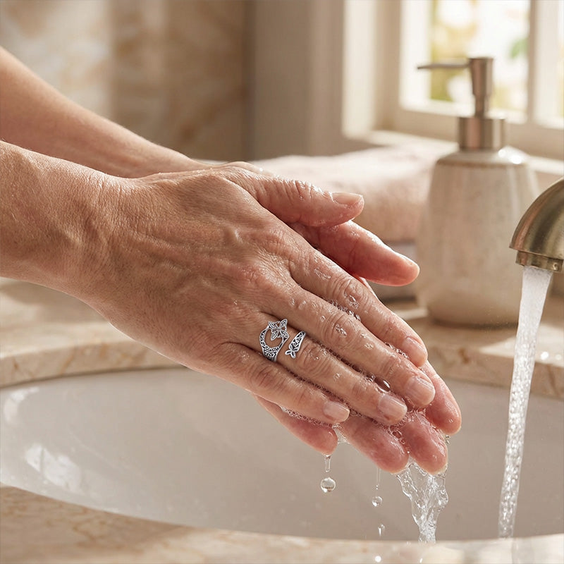 För att bibehÄlla dess lyster, undvik kontakt med starka kemikalier som parfym, hudlotion och klor.