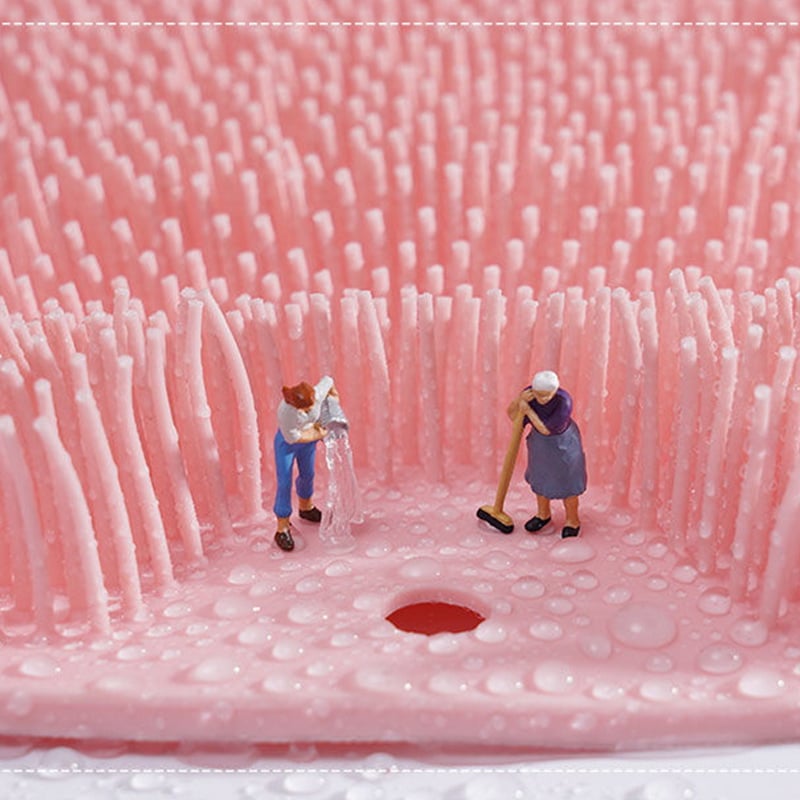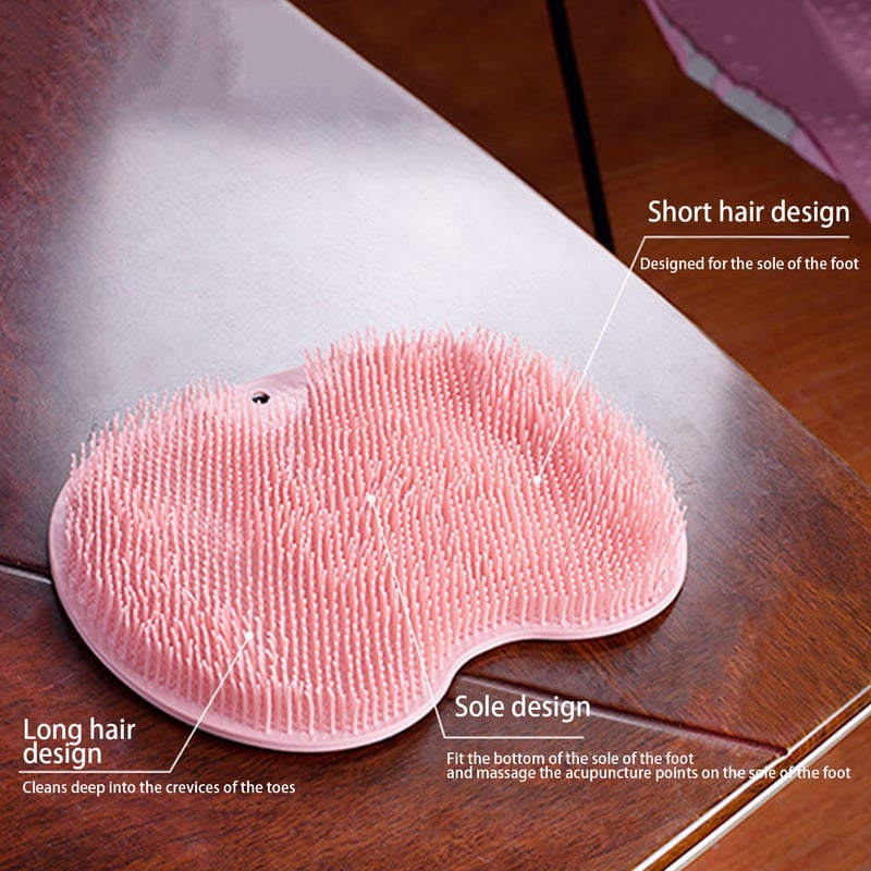 âšRengör och massera â Fotborsten Ă€r tillverkad av mer Ă€n 500 mjuka gummiborst, som i kombination med tvĂ„l producerar ett rikt lödder, snabbt rengör smuts och nagelband pĂ„ fotsulorna och masserar fotsulorna med upprepad gnuggning.