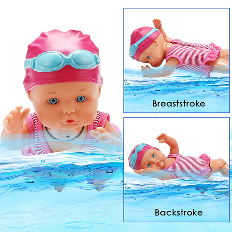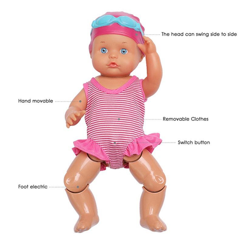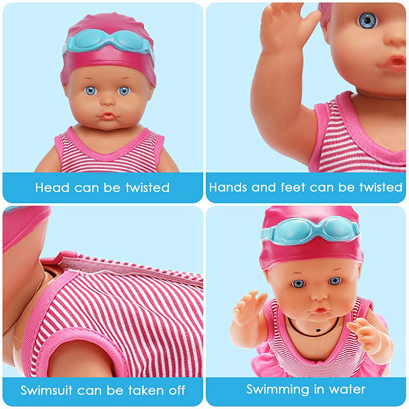 👧Den elektriska simdockan är vattentät, simmar bröstsim, svänger med benen, flyter på vattnet och leker med dina barn.